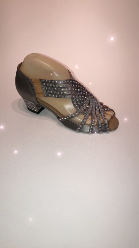 Name: Silver fabric pull on Diamontes sandal Heel: regular line dancer 1.5 Soul: suede